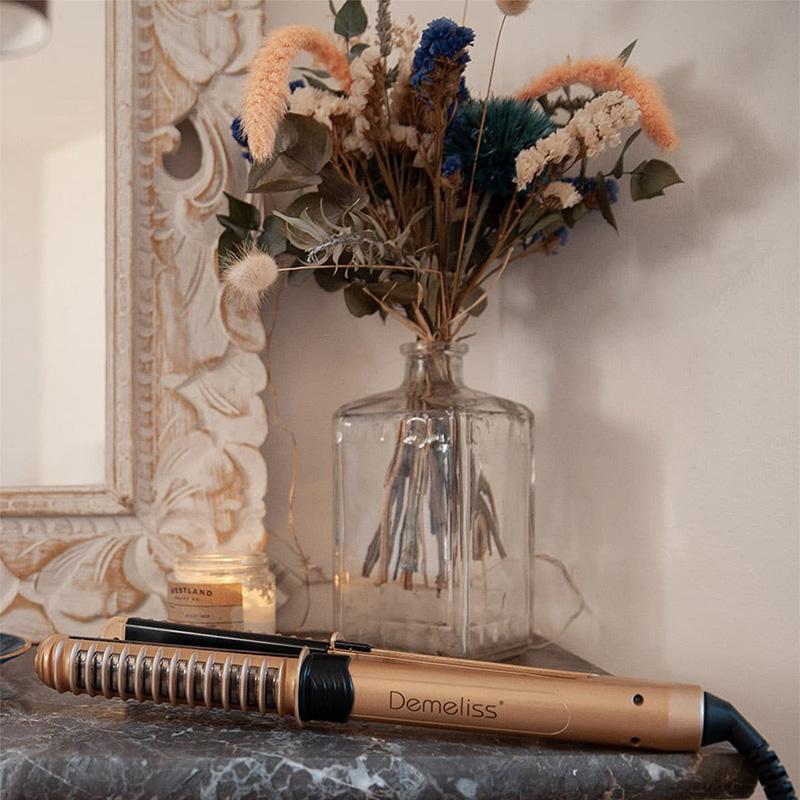 SAINT ALGUE DEMELISS X-CURLER® rettetang er unikt designet for de som ønsker å både rette ut og krølle håret. For enkelt å forme de perfekte krøllene er platene bevegelige, noe som gjør at du kan skape optimalt trykk på håret. På utsiden av rettetangen er det oppvarmede riller som hindrer håret i å skli av, men bidrar også til ekstra varme slik at du lettere kan forme håret og få et langvarig resultat.