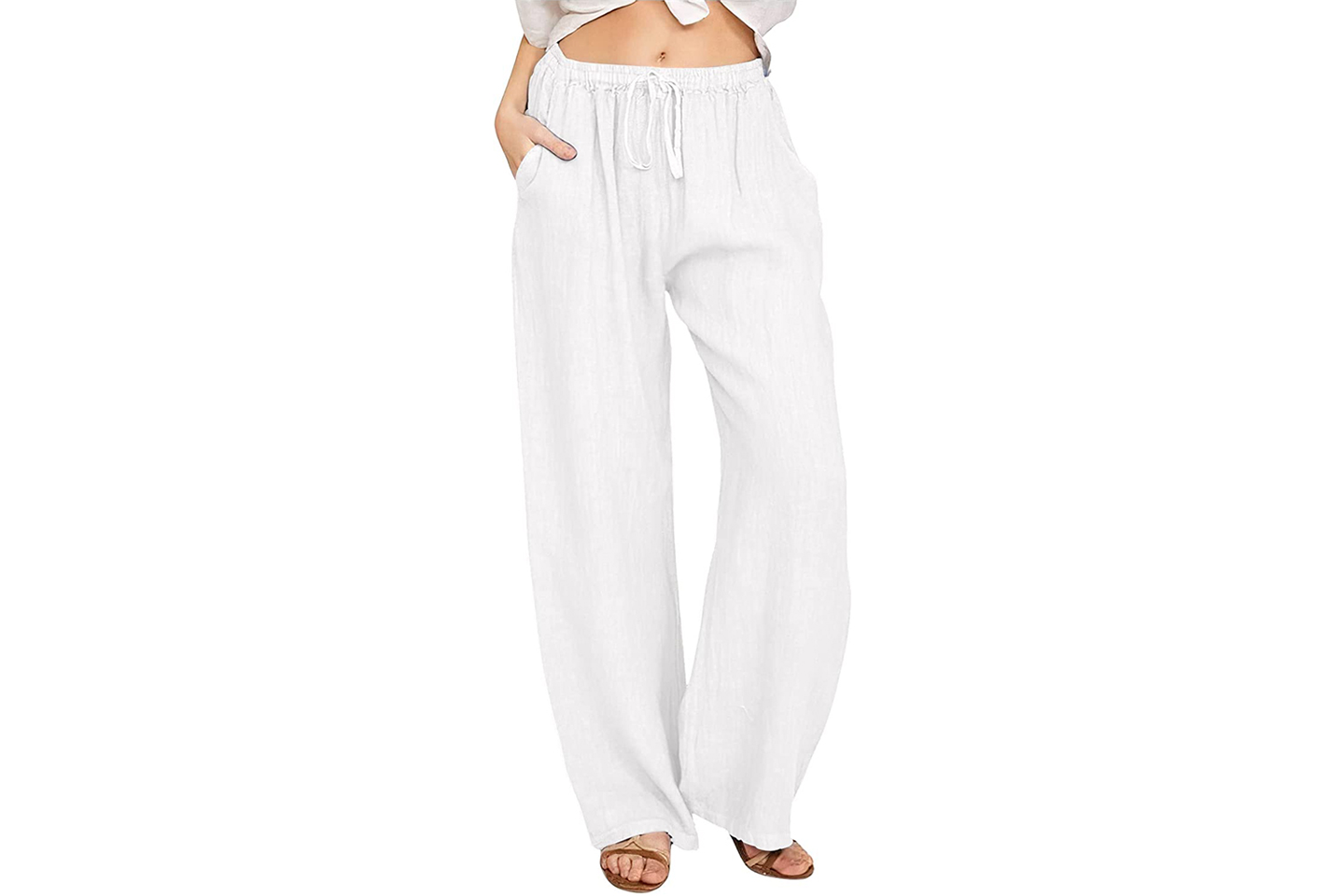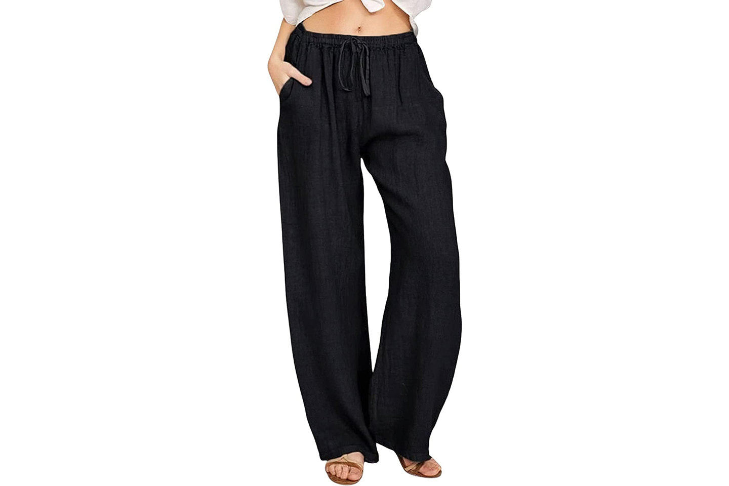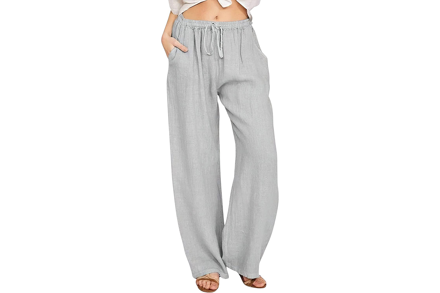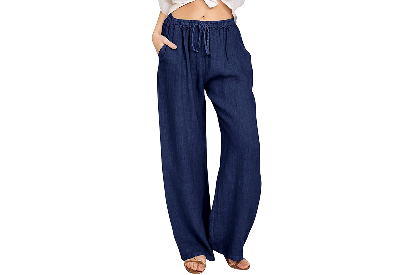 Bomullsbukse med vide ben og avslappet passform. Buksen har snor rundt midjen og to lommer foran.