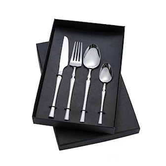 - 24 deler inkludert 6 kniver, 6 gafler, 6 spiseskjeer og 6 teskjeer