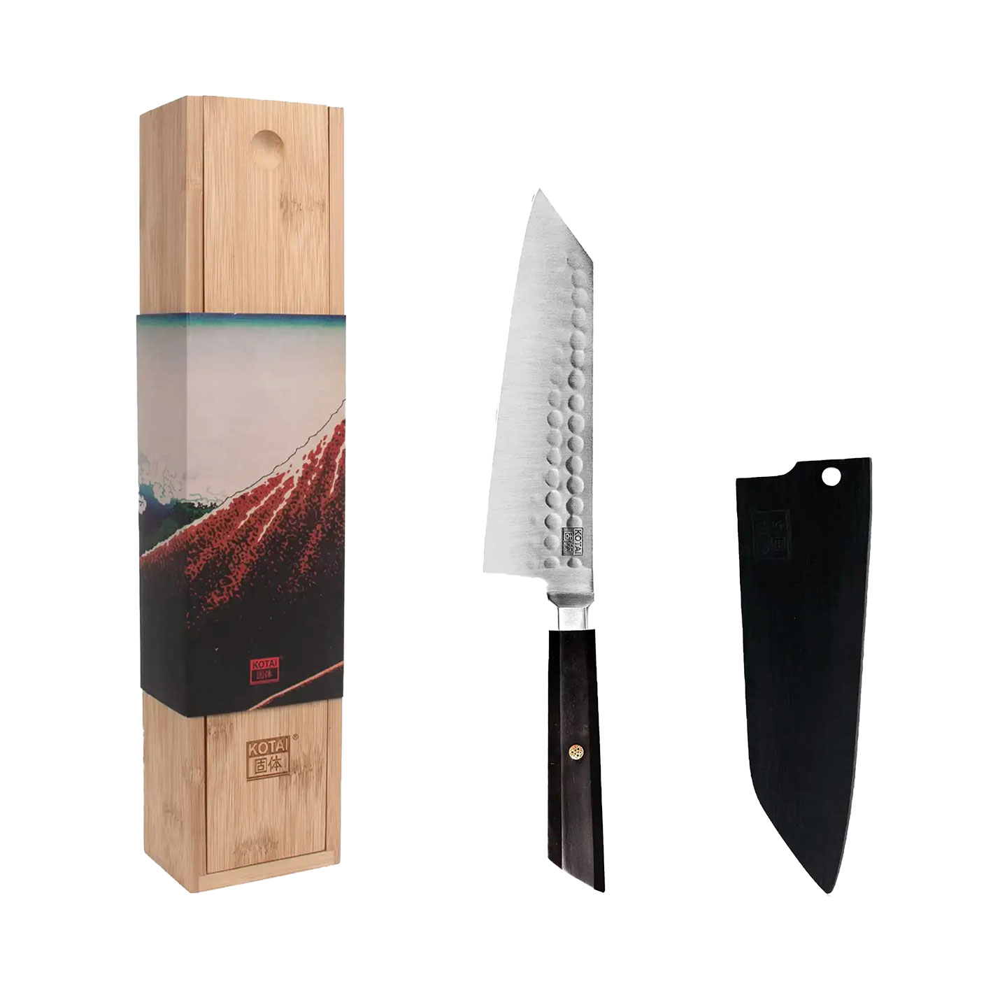 Den hamrede overflaten skaper små luftlommer mellom bladet og maten, noe som reduserer friksjon og hindrer at ingrediensene setter seg fast – en tradisjonell japansk teknikk som kombinerer skjønnhet med funksjon.