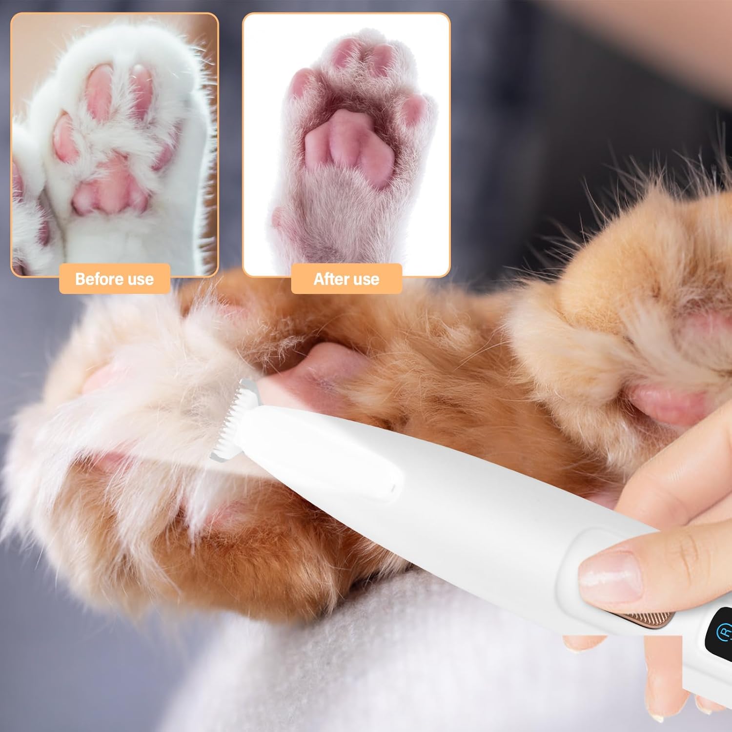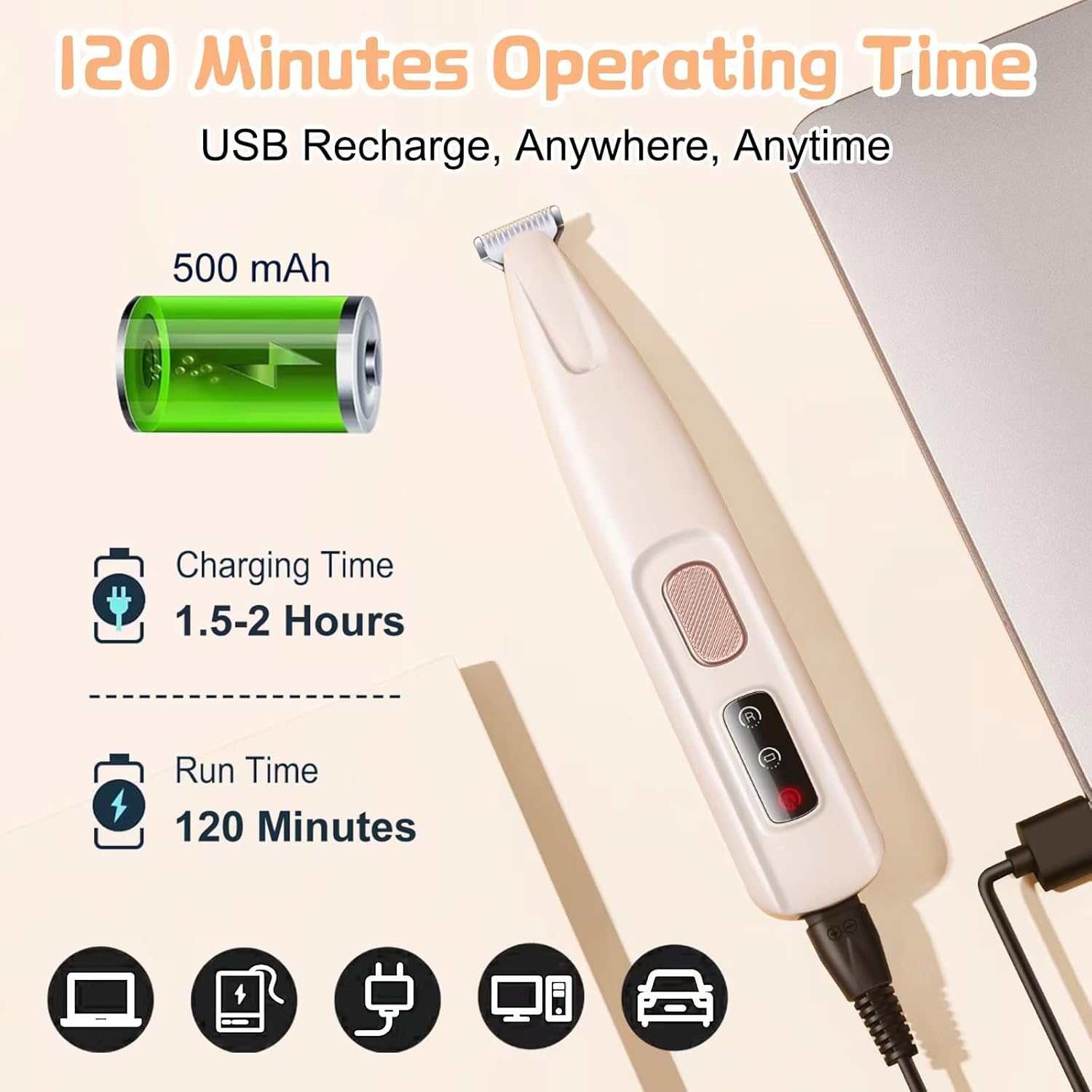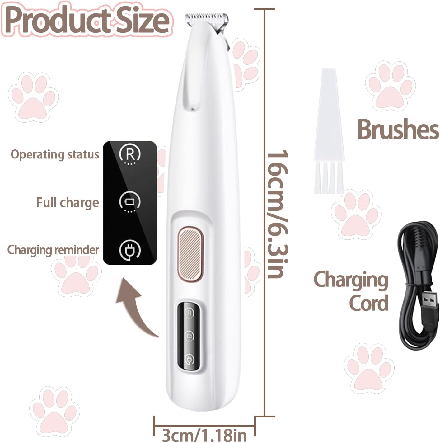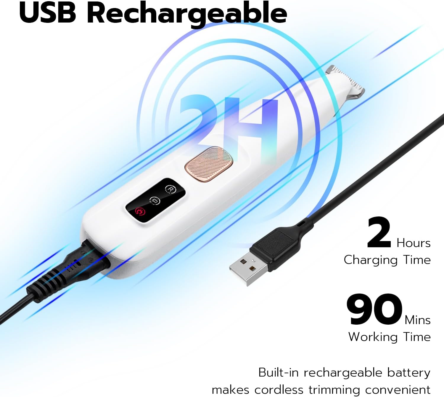 Vanntett hårklipper med små vibrasjoner; noe som får kjæledyret til å føle seg rolig og komfortabelt under trimmingsprosessen. Det avrundede keramiske hodet sikrer en jevn og trygg klipping. Innebygget LED-lys gir bedre belysning dypt inn i klorommet, noe som sikrer bedre synlighet og presisjon ved trimming.