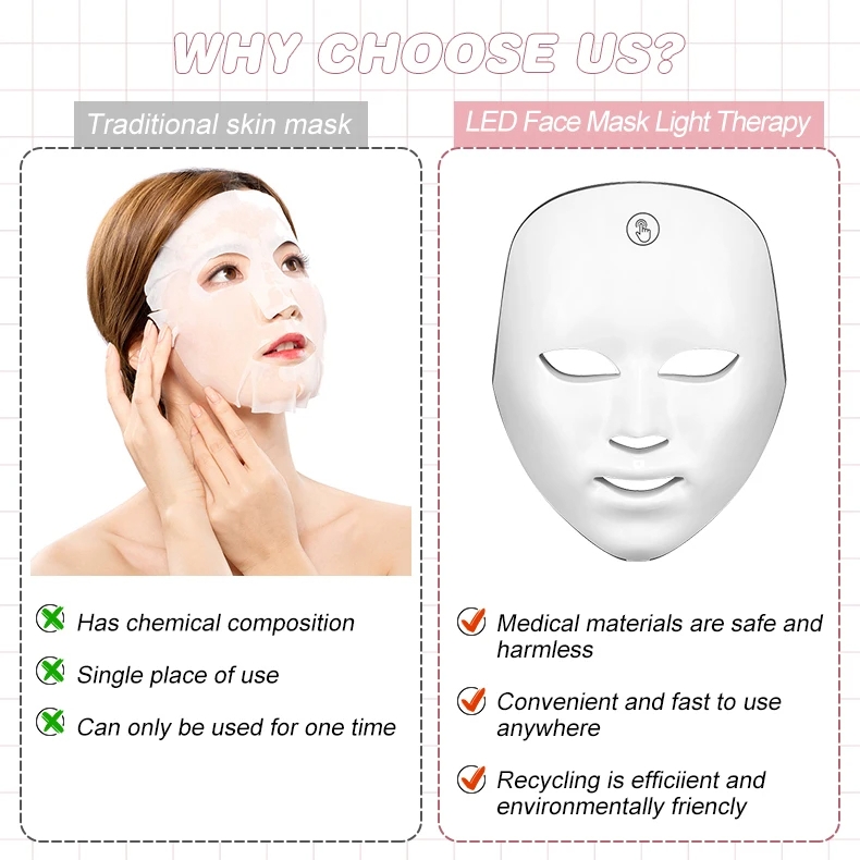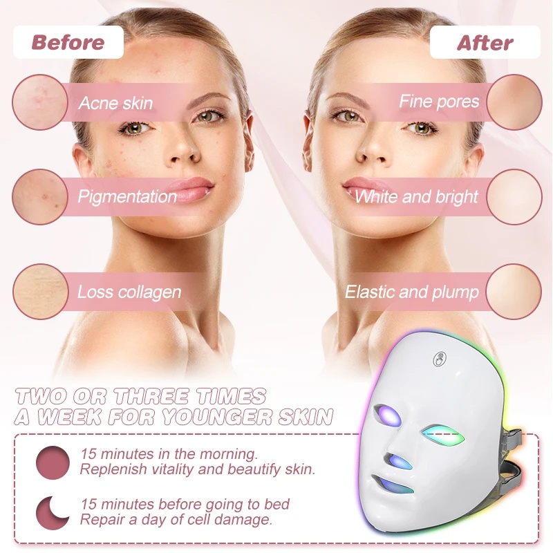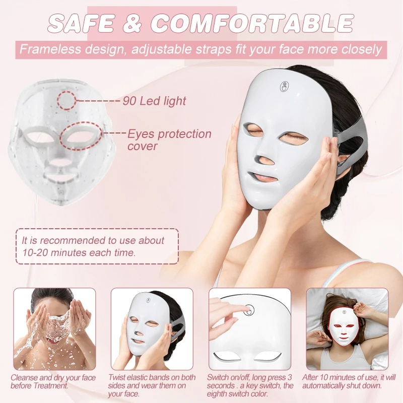 Få strålende hud hjemme med vår trådløse LED-ansiktsmaske! Med 7 tilpassede lysmoduser kan du enkelt bekjempe akne, jevne ut hudtonen og oppnå en glødende look – perfekt for enhver anledning!