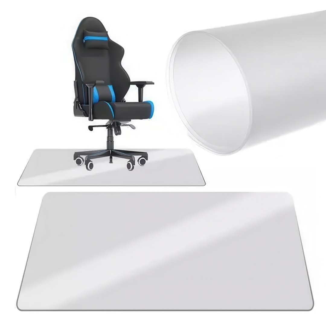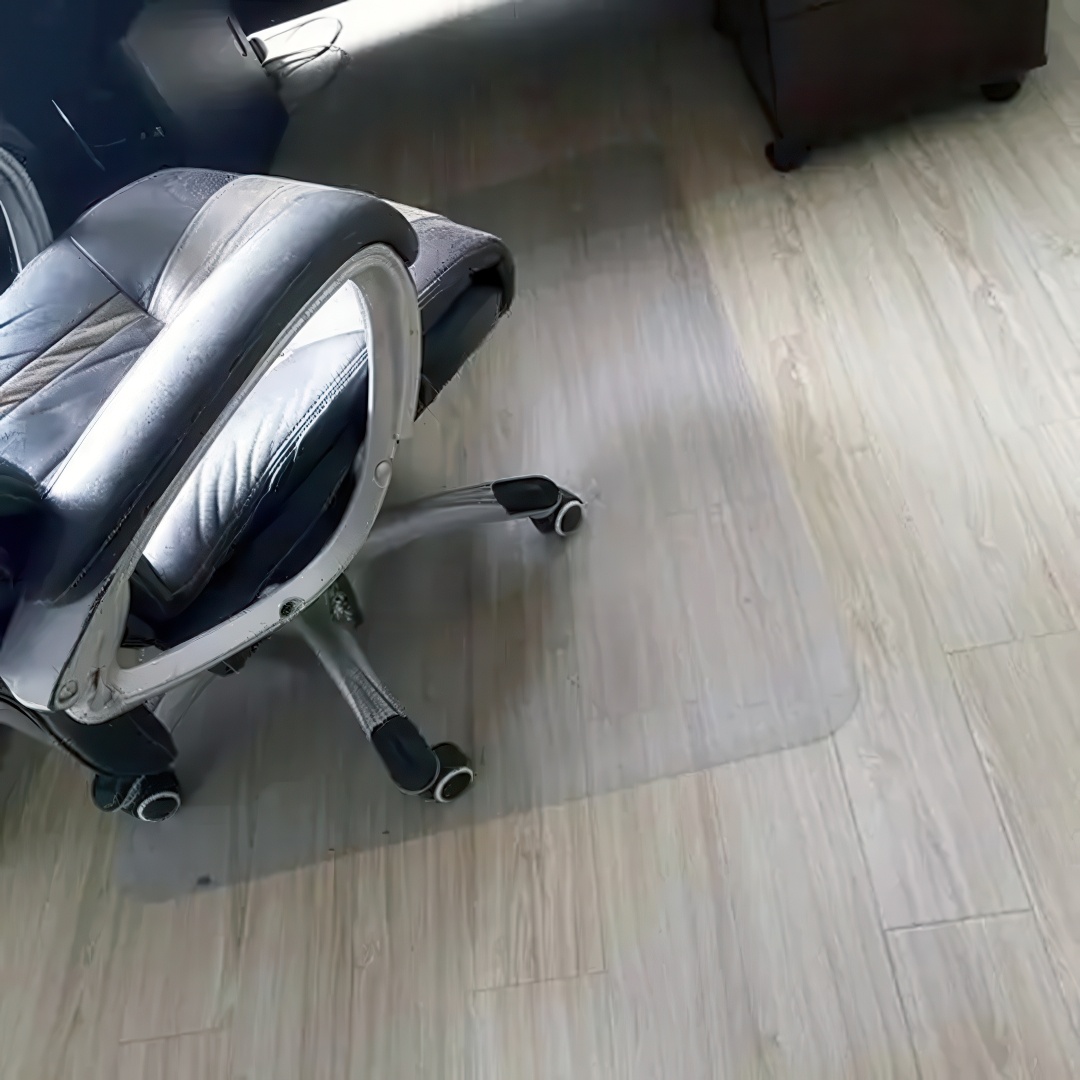Diskret og slitesterk gulvbeskyttelse for stol eller skrivebord.